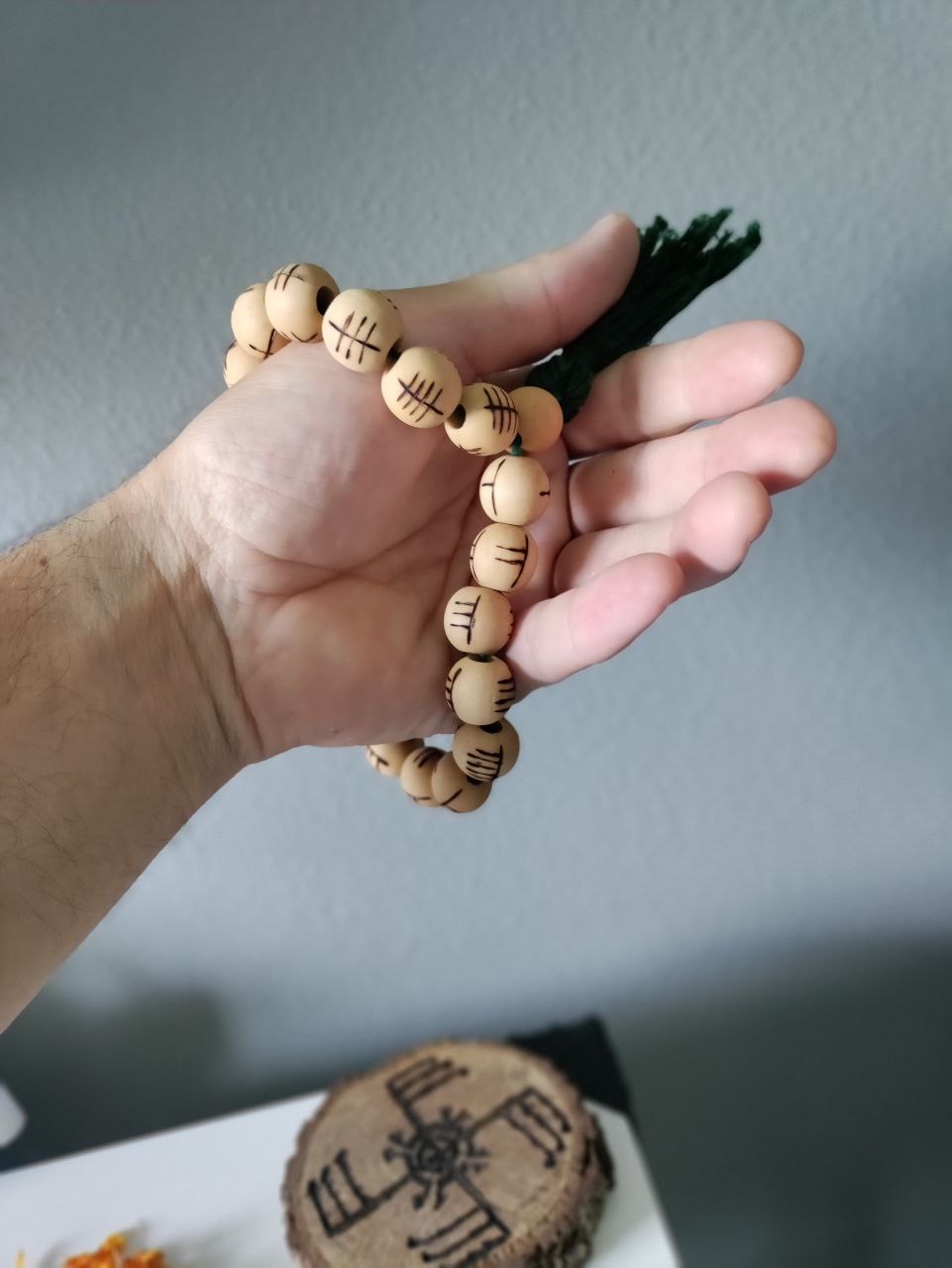 Handmade Ogham meditation ( Marna in reconstructed Gaulish ) beads are good for recital of the four Aicme’s of Ogham. The beads contain the original 20 characters of the system.
